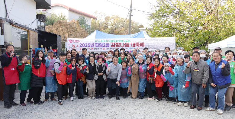 [동구 세계타임즈=이채봉 기자] 대전 동구 판암2동 행정복지센터(동장 박순희)는 20일 조대포가든식당 뒤편에서 지역사회보장협의체(위원장 조성대)와 11개 자생단체가 함께 ‘2025년 김장나눔 대축제’를 개최했다고 밝혔다.