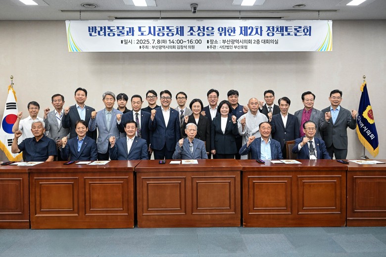 [부산 세계타임즈=이용우 기자] 부산광역시의회 김창석 의원(사상구2, 국민의힘)이 주최하고 (사)부산포럼이 주관한 『반려동물과 도시공동체 조성을 위한 제2차 정책토론회』가 7월 8일(화) 오후 2시, 부산광역시의회 대회의실에서 개최되었다.