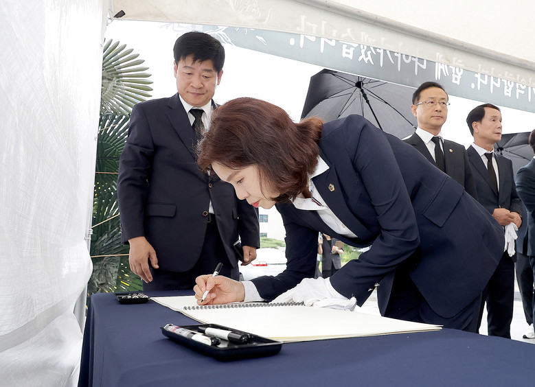 [대전 세계타임즈=이채봉 기자] 대전시의회 교육위원회(위원장 이금선)는 6일, 대전용산초 순직교사 1주기를 맞아 대전교육청 내에 마련된 추모소를 찾아 헌화하고, 이어 교육청 대강당에서 진행된 추모식에 참석했다.