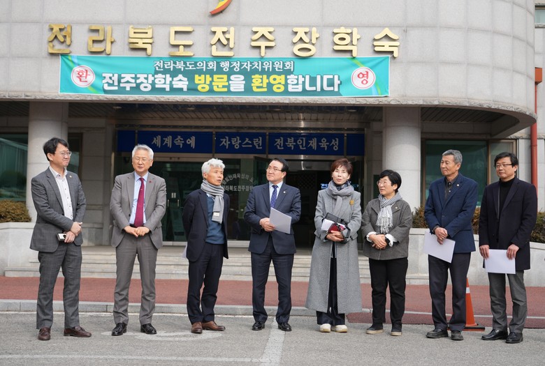 이날 행정자치위원회 위원들은 전주시 덕진구 인후동에 위치한 전주장학숙이 1999년 개관 이후 지속적인 시설 개보수에도 불구하고 석면공사 등 조속한 시설개선과 입사생 생활 만족도 제고가 필요하다며, 추후 개선 대책을 마련할 것을 주문했다.