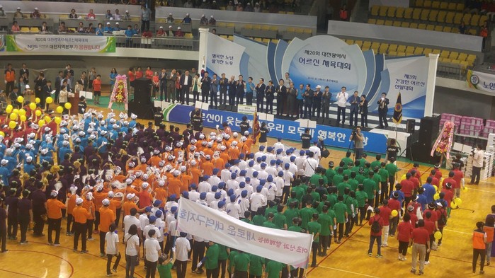 [대전=세계타임즈 이장성 기자] 7천명 SNS 대전시 봉사단체 사랑의 사다리 밴드(리더 이정제)는 29일 오전9시~오후4시 대전시 노인연합회(회장 이철연)주관으로 5개구 자치구회원 2,500명이 대전충무체육관에서 진행된 제20회 어르신 체육대회에서 교통 및 행사 진행 봉사로 사회적 효행을 실천하였다.