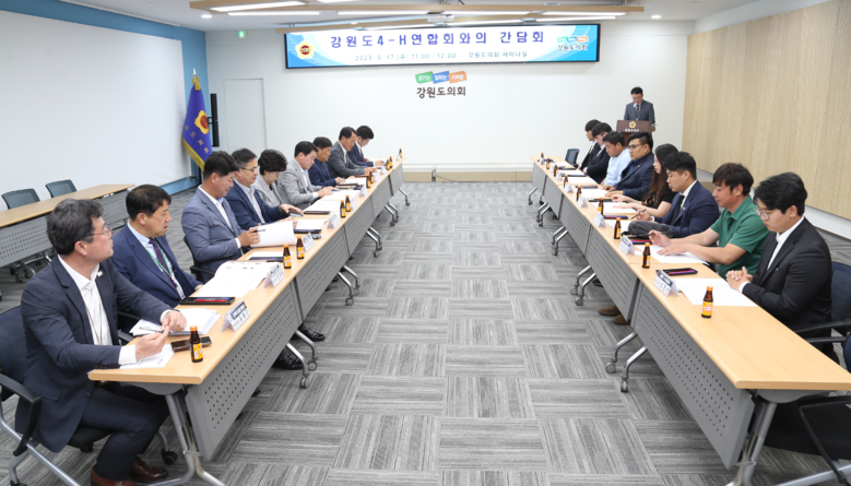 [강원도 세계타임즈=김민석 기자] 강원도의회 농림수산위원회(위원장 김용복) 위원들은 5월 17일(수) 제319회 임시회 회기 이틀째인 강원도4-H연합회와 간담회를 강원도의회 세미나실에서 개최, “청년농업인 정착지원 정책, 농지은행 농지취득 절차 간소화, 농업지역 아이돌봄서비스 확대 등” 건의 사항을 청취했다.
