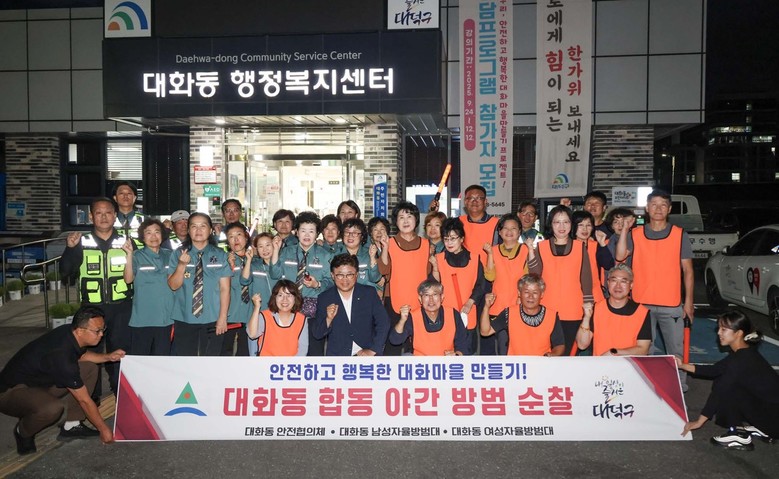 장선영 대화동장은 “평소에도 지역 안전을 위해 헌신해주시는 자율방범대와 안전협의체가 함께 생활 안전 사각지대를 체계적으로 돌보는 모범적인 모델을 보여주셔서 감사드린다”라며 “앞으로도 긴밀한 협력을 통해 주민이 더욱 살기 좋은 안전한 대화 마을을 만들어 가겠다”고 밝혔다.