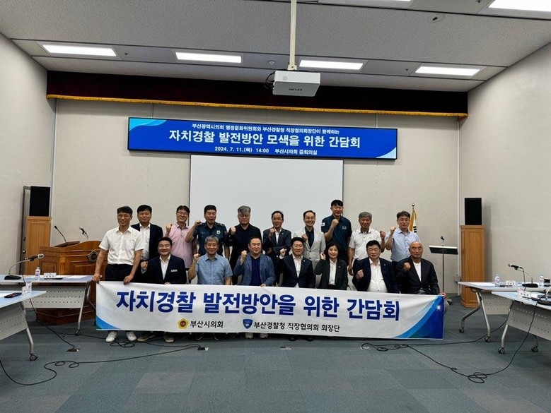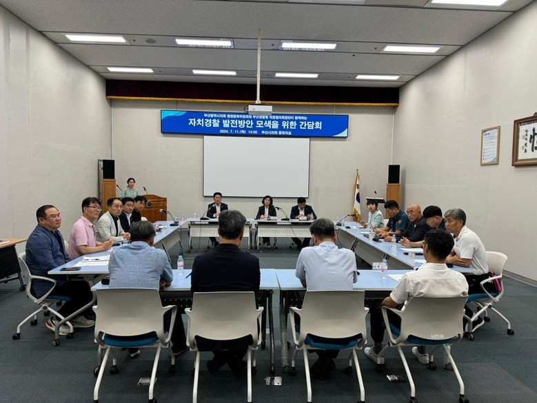 [부산 세계타임즈=이용우 기자] 부산광역시의회 행정문화위원회 의원들은 부산경찰청 직장협의회 회장단들과 중심지역관서제 확대 시행 저지를 위해 11일 오후 2시, 부산광역시의회 증회의실에서 ‘자치경찰 발전방안 모색을 위한 간담회’를 개최하였다.