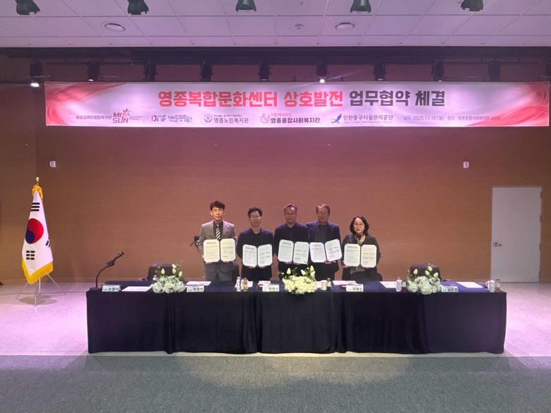 [중구 세계타임즈=심하린 기자] 영종복합문화센터 상주 5개 기관은 영종국제도시 구민의 삶의 질 등의 향상에 힘쓰고자 지난 10일 상호 업무협약을 체결했다.