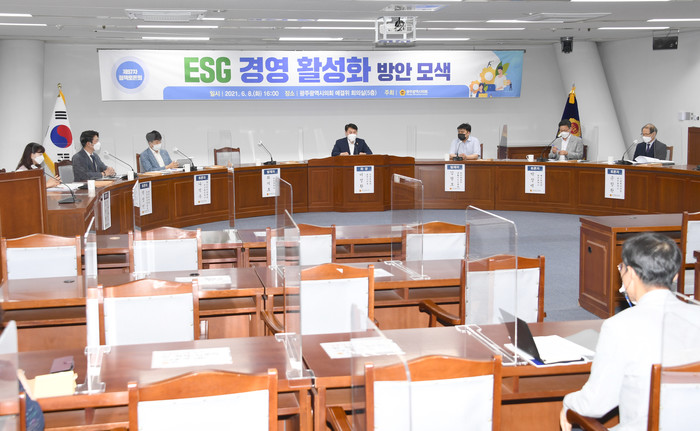 이날 좌장을 맡은 이정환 의원은 “일반인에게는 다소 생소하게 느껴질 수 있는 ESG는 이제 기업의 친환경 경영, 사회적 책임경영, 투명 경영을 평가하는 핵심지표가 되었다”고 전하며, “ESG 경영이 시대적, 사회적 대안가치로 떠오르고 있는 지금, 이번 토론회를 통해 광주시가 ESG라는 사회적 가치를 실현하기 위해 무엇을 어떻게 준비해야 하는지 논의하고 지혜를 모을 수 있는 아주 소중한 자리가 마련되었다”고 밝혔다.