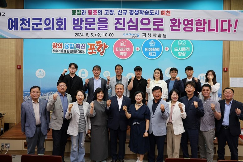 5일 오전에는 포항시 평생학습원을 방문해 이강덕 포항시장과 환담을 갖고, 평생학습원 관계자로부터 시의 평생교육 운영 관리 및 시설 현황 등을 청취한 뒤 현장을 둘러보며 예천 평생학습도시 선정 이후의 발전 모델에 대해 비교시찰했다.