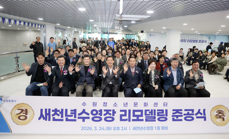 [수원시 세계타임즈=송민수 기자] 수원특례시의회(의장 이재식)는 24일 청소년문화센터 내 새천년수영장에서 열린 「새천년수영장 리모델링 공사 준공식」에 참석해 준공을 축하했다.