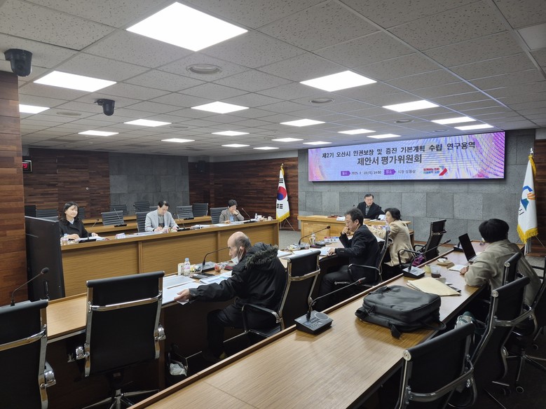 [오산시 세계타임즈=송민수 기자] 오산시(시장 이권재)는 지난 19일 오산시청 상황실에서 제2기 오산시 인권보장 및 증진 기본계획 수립을 위한 연구용역 수행업체 선정을 위해 제안서 평가위원회를 개최했다고 밝혔다.