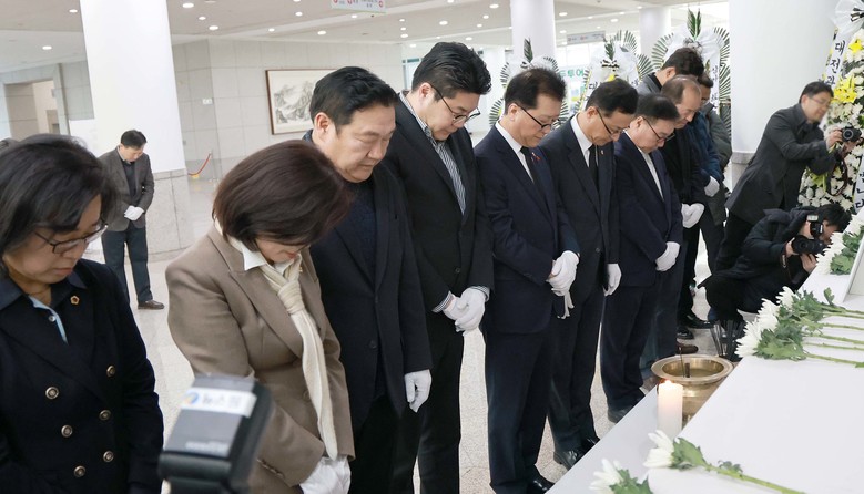 [대전 세계타임즈=이채봉 기자] 대전시의회 조원휘 의장은 30일 오후 대전시청 1층에 마련된 제주항공 여객기 사고 희생자 합동분향소를 찾아 희생자들의 명복을 빌며 깊은 애도의 마음을 표했다.