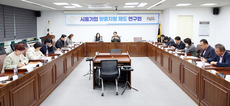 [시흥시 세계타임즈=송민수 기자] 경기 시흥시의회 의원 연구단체 ‘시흥기업 맞춤지원 제도 연구회’가 11월 18일 의회운영위원회 회의장에서 연구 활동 마무리 성과 공유회를 열고, 올해 추진된 연구 활동을 종합 점검하며 향후 시흥기업 지원 정책의 발전 방향을 논의했다.