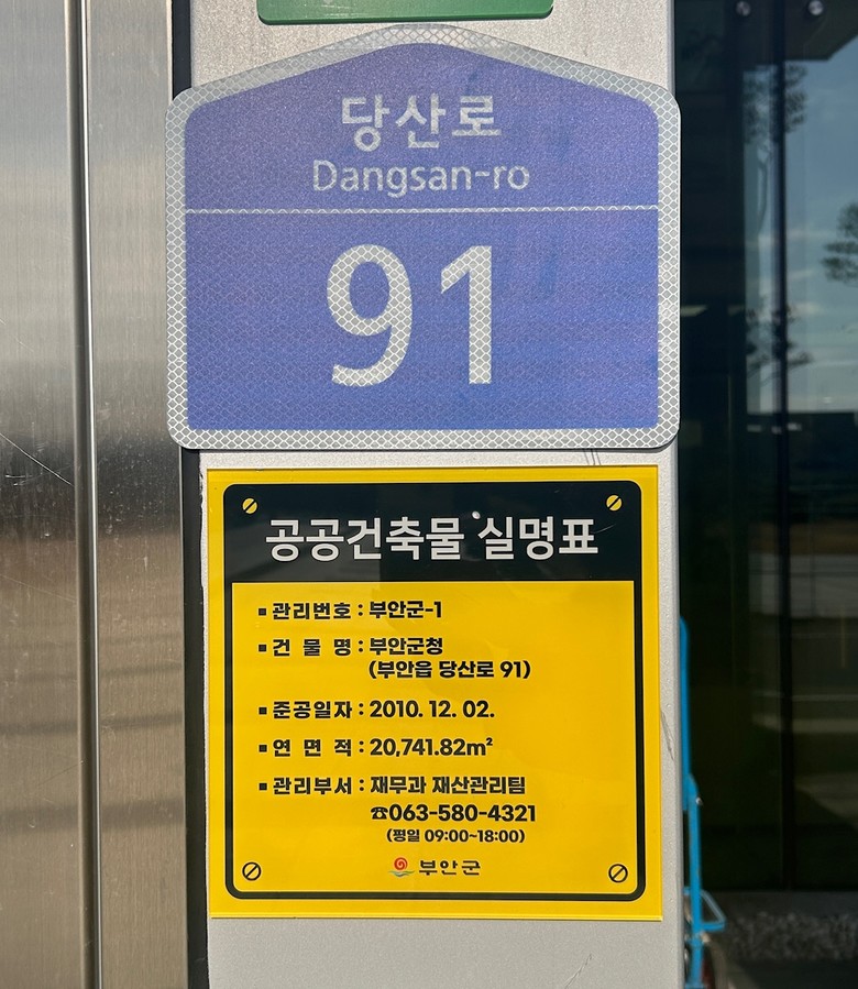 이번에 부착되는 관리실명표에는 건물명, 주소, 준공일자, 연면적 등 기본 정보는 물론 해당 시설물을 직접 관리하는 부서명과 연락처가 명확하게 기재된다.