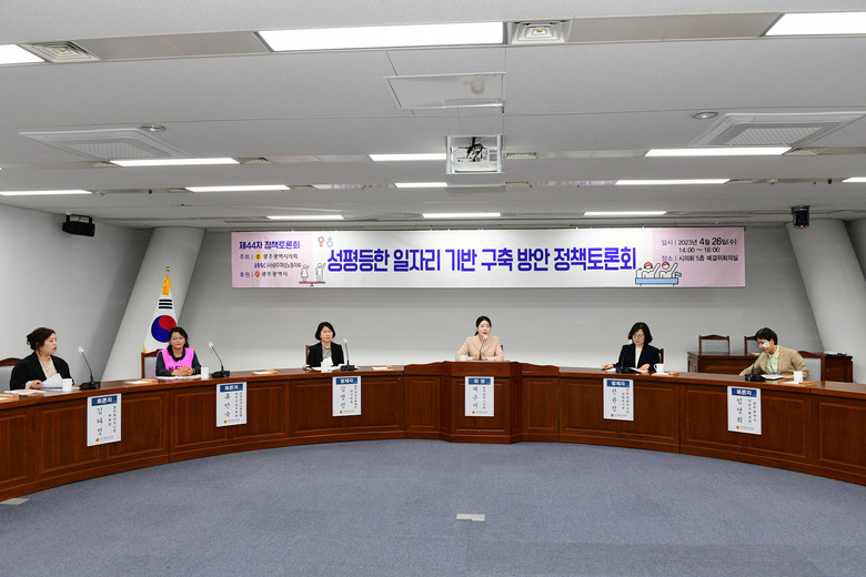 이날 정책토론회는 채은지 의원이 좌장을 맡고, 전윤정 국회 입법조사처 입법조사관과 김영신 광주여성가족재단 연구위원이 발제하였다. 이어 김다정 광주청년유니온 위원장, 류만숙 전국여성노동조합 광주전남지부장, 임영희 광주광역시 여성가족과장이 토론자로 참여했다.