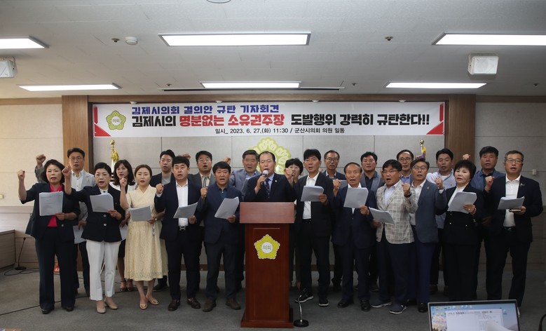 이는 김제시의회가 전라북도를 분열시키고 동서2축 도로와 군산새만금신항만을 빼앗아가려는 명백한 획책이며, 도발행위(소유권 주장)이다. 이에 군산시의회는 오늘부로 군산새만금신항과 동서2축 도로 구간을 ‘특별위기대응지역’으로 선언하고 모든 군산시민이 결집하여 총력 대응에 나설 것을 천명한다.