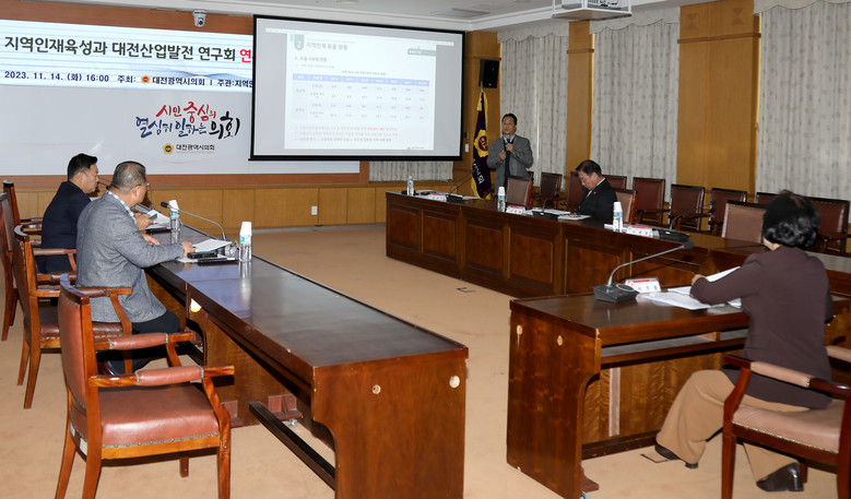 [대전 세계타임즈=이채봉 기자] 대전시의회 지역인재육성과 대전산업발전 연구회(회장 박주화 의원)는 14일 ‘대전 미래산업과 연계한 지역맞춤형 인재육성 지원방안’ 연구용역 중간보고를 청취했다.