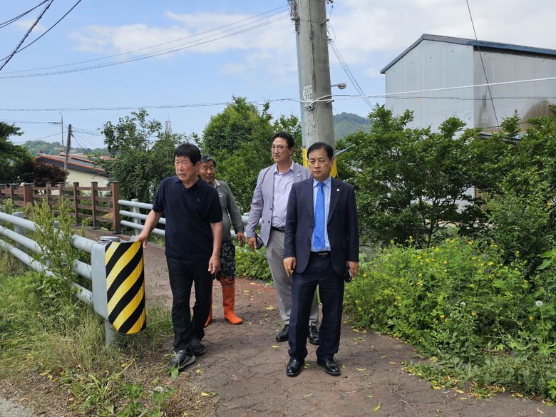 서남용 의장과 김규성 의원이 찾은 곳은 고산면 율곡리 인근으로 우천 시 많은 양의 토사가 유입돼 수시로 농업용수로가 막혀 인근의 주민들이 불편을 호소하고 있었다.