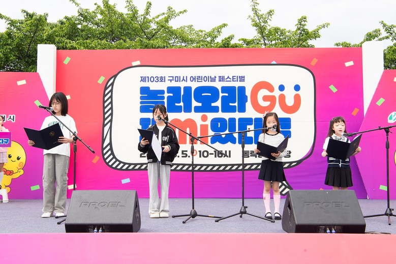 김장호 구미시장은 이날 축사를 통해 “어린이는 우리 모두의 미래이며, 아이들이 꿈을 키우며 건강하게 자랄 수 있는 환경을 조성하는 것이 시의 책임”이라며 “아이와 부모 모두가 행복한 도시, 구미를 만들기 위해 더욱 노력하겠다”고 밝혔다.