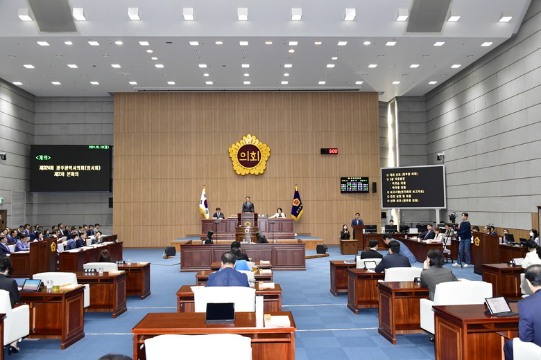 이번 임시회에서는 광주시 및 시교육청의 2024년도 제1회 추가경정 예산안 심사, 조례안 29건, 규칙안 1건, 동의안 3건, 계획안 2건, 출석요구 및 징계의 건 등 총 41건의 안건을 처리했다.