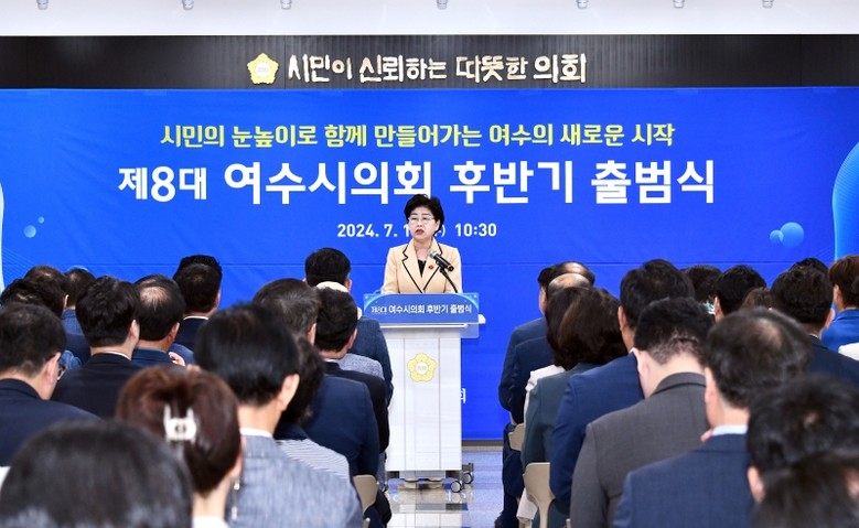 [여수시 세계타임즈=우덕현 기자] 여수시의회(의장 백인숙)는 7월 10일 의회 청사에서 반환점을 맞은 8대 의회의 후반기 출범식을 열고 본격적인 후반기 활동의 시작을 알렸다.