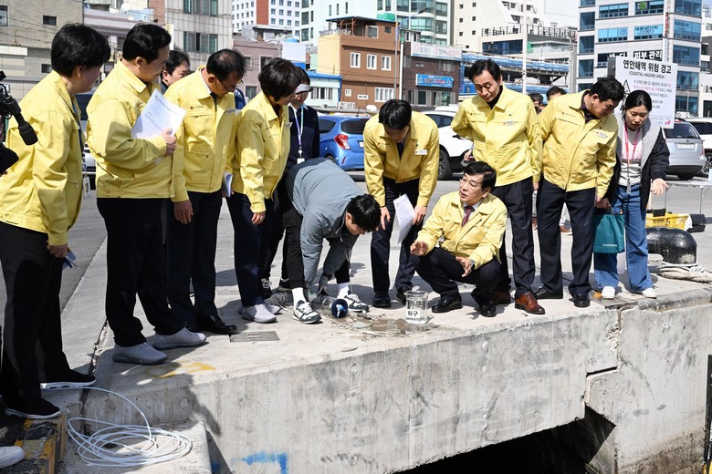 먼저 3월 10일(금)에는 부산시 보건환경연구원에서 실시하는 중구 보수천 및 남항물량장 일대 하천수 해양유입이 해양 수질과 인근 수산시장에 미치는 영향 조사 현장을 방문하여 △보수천 해양합류지점 및 남포천매립지 등 남항물량장 일대의 하천수 해양유입 지점을 시찰하고, △보수천 하천복개지역(중류‧하류‧하구)의 내부환경 조사현장 방문을 통하여 수질 및 퇴적물, 악취 성분 평가 등 복개하천 내 수질환경에 대한 관심을 높이고, 부산시 대표 수산시장인 자갈치 시장에서 수산물 보관에 해수를 활용하는 것에 대하여 먹거리 안전성을 유지할 수 있도록 지속적인 조사 실시를 당부하였다.