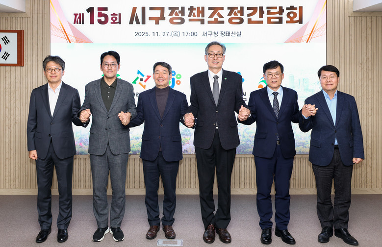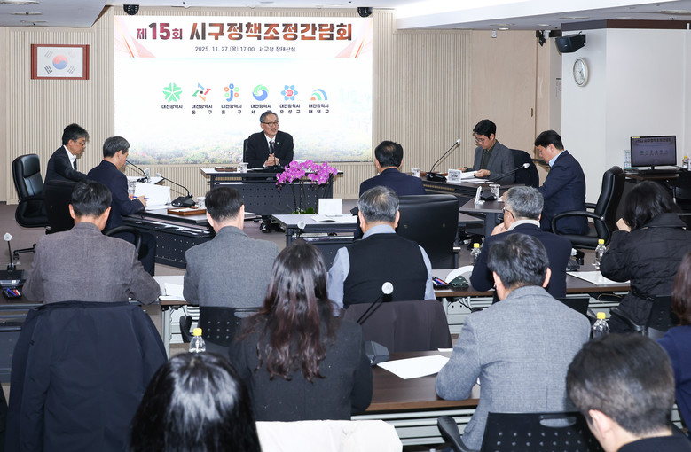 시는 27일 서구청 장태산실에서 ‘제15회 시구정책조정간담회’를 개최하고, 유득원 대전시 행정부시장과 5개 자치구 부구청장이 참석한 가운데, 9개 주요 협력과제를 심도 있게 논의했다.