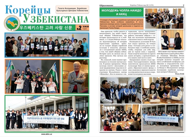 | ▲ ‘우즈베키스탄 고려 사람 신문’에 게재된 전남학생공공외교스쿨 활동 모습. |