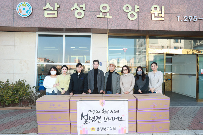 [충북 세계타임즈=이현진 기자] 충북도의회 이의영 부의장은 설 명절을 맞아 24일 청주 삼성요양원을 방문해 위문품을 전달하고 시설 관계자들의 노고를 격려하며 건의사항 등을 청취했다.