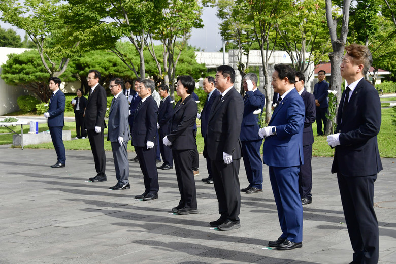 [광주 세계타임즈=손권일 기자] 이정선 광주시교육감은 15일 광복80주년을 맞아 상무시민공원 광주독립운동기념탑을 참배했다.