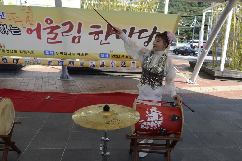[세계타임즈] 최성룡 기자 = 창원시민과 함께하는 어울림 한마당 공연이 10월 22일(토) 오후 2시 첫 무대를 아랑 고고 장구와 딱풀예술단(원장 곽다혜) 단원들이 내서읍 삼께 근린공원 특설무대에서 신명 나는 장구춤 한마당 공연이 펼쳐졌다.