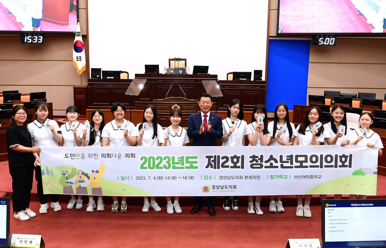 [경남 세계타임즈=최성룡 기자] 경상남도의회는 4일, 도의회 본회의장에서 마산여자중학교 학생들과 지도교사가 참여한 가운데 제2회 경상남도의회 청소년 모의의회를 개최했다.