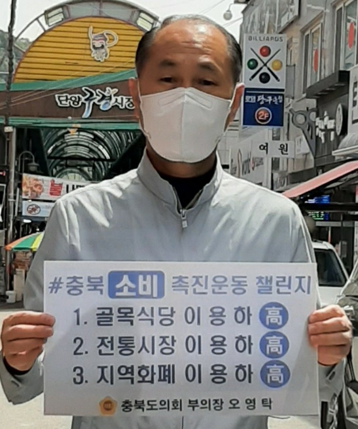 [충북=세계타임즈 이현진 기자] 오영탁 충북도의회 부의장은 26일 범도민 소비촉진을 위한 ‘충북 소비 촉진운동 챌린지’에 동참했다.