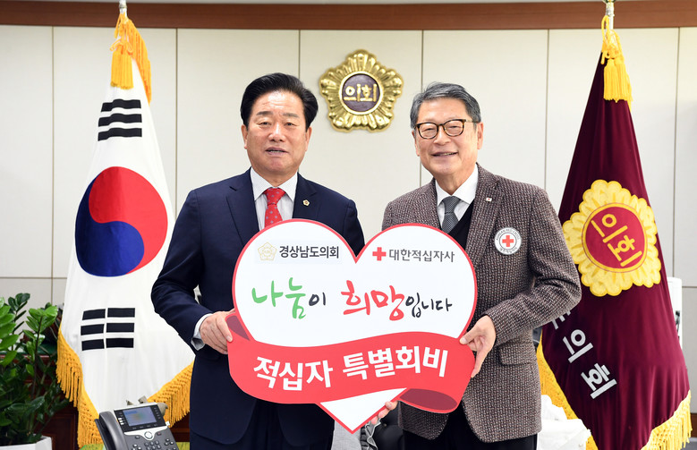 김진부 경상남도의회 의장은 “재난구호활동에 항상 앞장서고 헌신적인 봉사활동으로 도민들에게 늘 희망이 되어주는 대한적십자사 경남지사의 노고에 깊이 감사드린다”며, “340만 도민 모두의 행복을 위해 경상남도의회는 대한적십자사 경남지사의 구호와 봉사활동에 차질이 없도록 지원을 아끼지 않겠으며, 도민들도 적십자 특별회비 기부에 많은 참여를 부탁드린다”고 밝혔다.