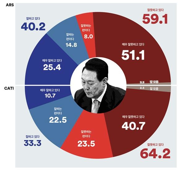 대통령 국정운영 평가 전화면접조사:긍정 40.2% vs 부정 59.1%
