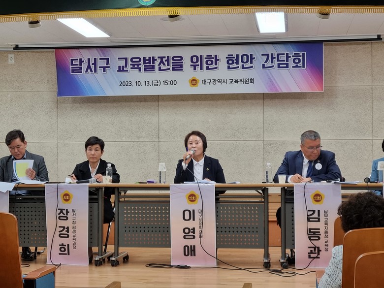 한편, 교육위원회는 2016년부터 현장 소통강화 및 교육 현안 해결을 위해 이어온 교육 현안 간담회를 지난 9월 북구, 서구에 이어 세 번째로 달서구 지역에서도 개최했으며, 앞으로도 현장 수요에 맞는 간담회를 지속적으로 개최할 예정이다.