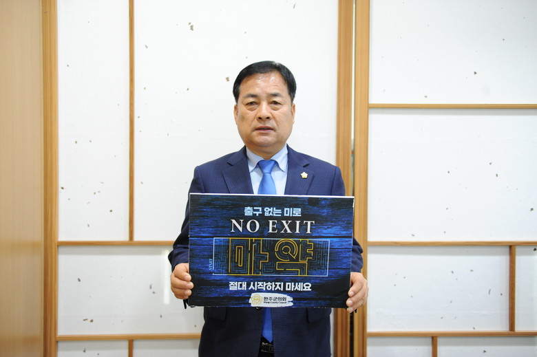 [완주=세계타임즈 = 김윤영 기자] 완주군의회 서남용 의장이 23일 마약 예방을 위한 ‘노 엑시트(NO EXIT)’ 릴레이 캠페인에 동참했다.