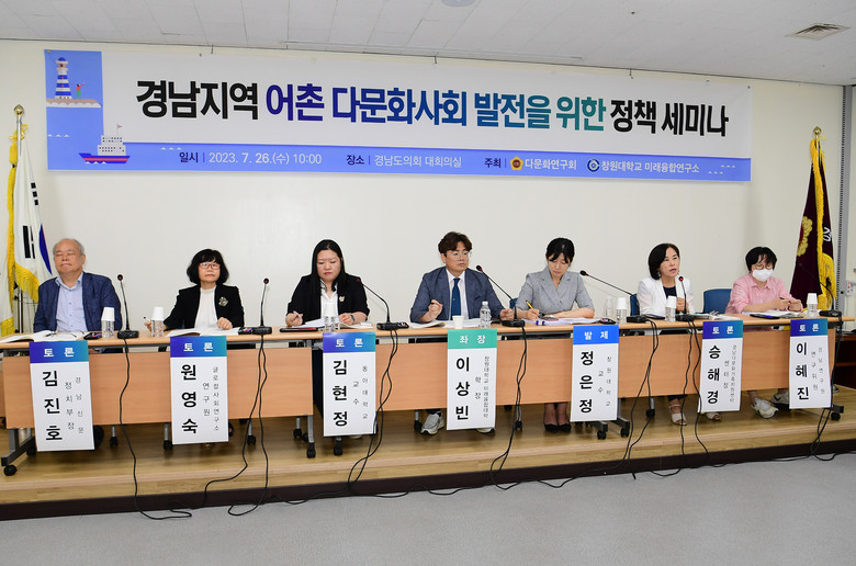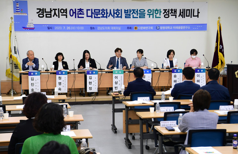 [경남 세계타임즈=최성룡 기자] 경상남도의회 의원 연구단체 다문화연구회(회장 이재두 의원)는 7월 26일 도의회 대회의실에서 ‘경남지역 어촌 다문화사회 발전을 위한 방안’이라는 주제로 학계 및 관련 전문가들과 함께 정책 세미나를 개최했다.