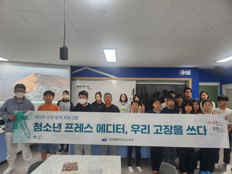 [강원도 세계타임즈=김민석 기자] 화천교육지원청(교육장 문영숙) 영재교육원은 10월 31일(금) 춘천 강원일보 본사에서 강원특별자치도교육청 중등교육과 주관 ‘청소년 프레스 에디터, 우리 고장을 쓰다’ 미디어 진로탐색 프로그램에 참여하여 ‘2025 미디어 진로탐색 프로그램과 함께하는 초.중등 영재 봉사활동’을 진행했다.