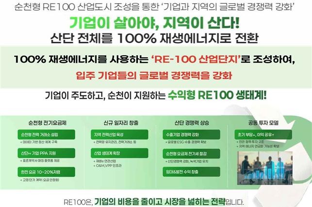 시 관계자는 “RE100 산업단지는 우리 수출기업의 경쟁력과 지역의 재생에너지 자원 활용을 연결하여 지역경제 부흥으로 귀결될 중요한 과제”라며 “순천시의 역량을 결집해 착실히 추진해 나가겠다”고 말했다.