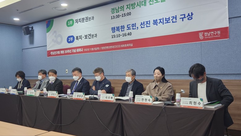‘행복한 도민, 선진 복지보건 구상’을 주제로 열린 복지·보건 분과 세미나에서는 하충관 경남대 사회복지학과 교수의 ‘민선8기 경남복지의 정책방향’ , 정백근 경상국립대 의과대학 교수의 ‘경상남도 보건의료 정책 선진화 방안’발표에 이어 염동문 창신대학교 교수, 전현숙 도의원, 권양근 경남도 복지보건국장, 이우배 인제대학교 교수가 토론자로 나섰다.