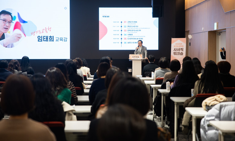 [경기도 세계타임즈=송민수 기자] 경기도교육청(교육감 임태희)은 8일 경기도서관 플래닛 경기홀에서 2025년 성과 나눔과 인공지능(AI) 시대 공공도서관의 미래 비전・학교- 지역사회 독서생태계 강화를 위한 “2025 경기도교육청 사서직 워크숍”을 개최했다,