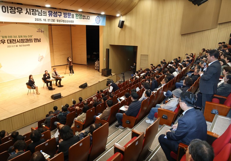 [대전 세계타임즈=이채봉 기자] 이장우 대전시장이 올해 세 번째 자치구 방문 행사로 27일 유성구를 찾아 구민 300여 명과 소통의 시간을 가졌다.
