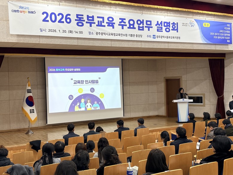 [광주 세계타임즈=손권일 기자] 광주동부교육지원청은 20일 광주시교육청교육연수원 중강당에서 ‘2026년 동부교육 설명회’를 개최했다.