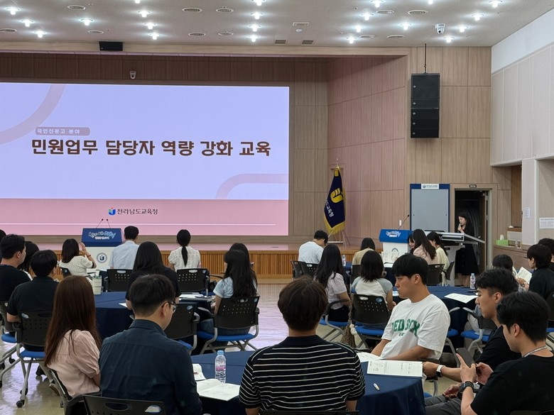 [전남 세계타임즈=우덕현 기자] 전라남도교육청(교육감 김대중)은 지난 18일 청사 대회의실에서 ‘민원업무 담당자 역량강화 교육’을 운영하고, 민원 대응 전문성 강화에 나섰다.