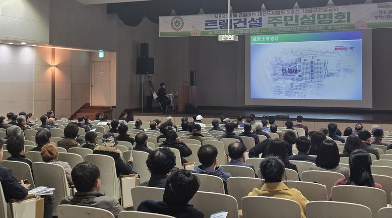 [대전 세계타임즈=이채봉 기자] 대전시는 27일 오후 3시, 기독교연합봉사회관에서 도시철도 2호선 12공구 건설공사와 관련한 주민설명회를 성황리에 개최했다. 설명회에는 약 300여 명의 지역 주민들이 참석해 높은 관심과 참여를 보였다.