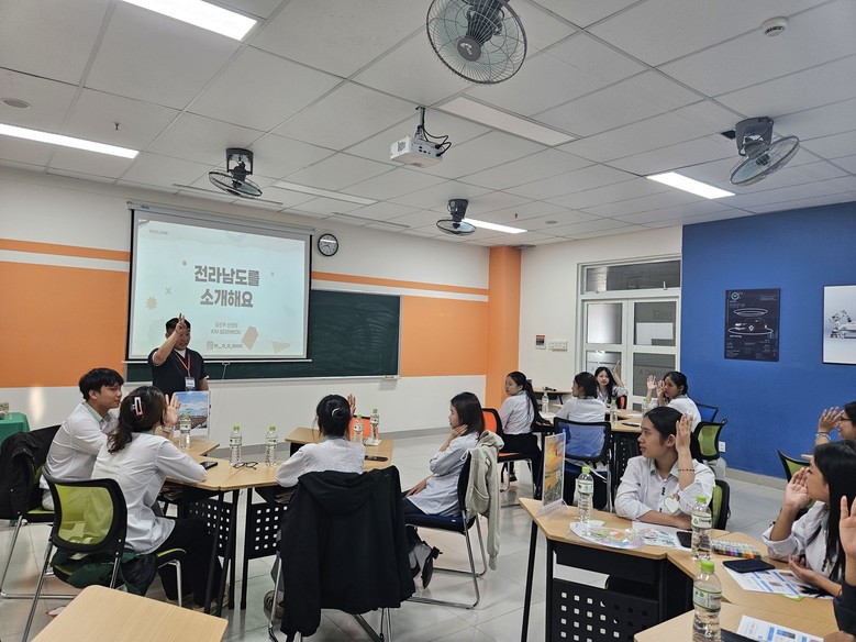 연수 첫날에는 다낭 동아대학교에서 한국어학과 학생 44명을 대상으로 ‘전남 문화 소개 프로그램’을 열어, 전남의 주요 지역과 음식, 전통문화를 한국어 수업과 연계한 실습형 강의를 진행했다. 학생들은 전남 지역의 다채로운 문화와 한국어 표현을 체험하며 한국어 학습에 대한 동기를 더욱 높였다.