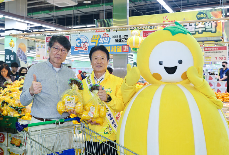 [성주군 세계타임즈=한윤석 기자] 경북 성주군(군수 이병환)은 성주참외 소비촉진을 위해 5월 2일(금)에 농협하나로마트 양재점에서 성주참외 홍보‧판촉행사를 개최했다.