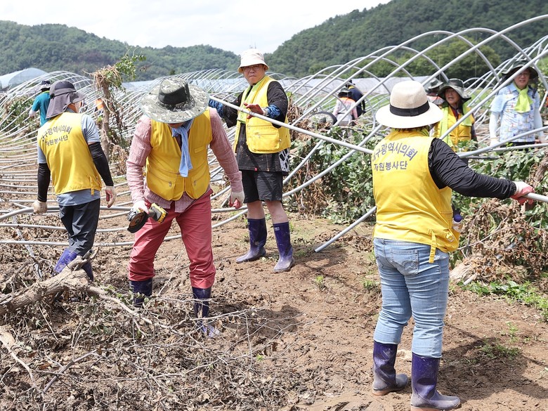 이날 대구시의회 봉사단은 수해 지역 대추나무 농가를 찾아 폭우로 파손된 비닐하우스의 비닐, 철골을 철거하고, 농작물과 토사 등 이물질을 제거하는 등 피해복구에 모자란 일손을 더하고 땀을 흘렸다.