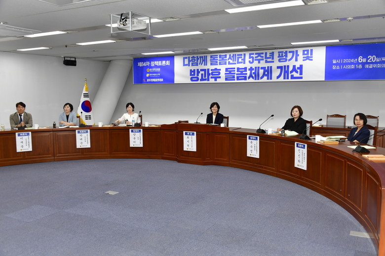 좌장에는 최지현 광주광역시의원이, 이어지는 토론에는 이재봉 광주북구다함께돌봄센터 우산센터장, 박태순 광주여성가족재단 연구위원, 신신하 광주광역시 아동청소년과장이 참여했다.