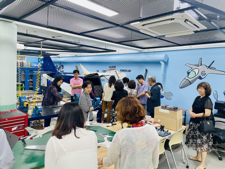 참석한 교장단은 교장실에서의 간단한 차담회를 시작으로 항공전기전자실습실, 목공실습실, 항공정비실 등 실제 실습 교육이 이루어지는 살아숨쉬는 교육 현장을 견학한 후 진리관 1층 디지털 교실에 다시 모여 산학일체형 도제학교 등 학교 진행 주요 사업에 대한 설명과 홍보를 듣는 시간을 가졌다. 제한된 여건상 짧게짧게 견학이 이루어졌지만 행사에 참가한 교장단들은 실습 기자재나 교육프로그램에 대해 수시로 질문하는 등 그 관심과 열의가 높았다. 실습실 이외에도 대학 진학을 희망하는 학생들의 꿈을 지원해주기 위해 마련된 글로벌인재아카데미 교실, 학교 협동조합이 운영하는 학교 카페도 둘러보며 학생들과학교 구성원들의 편의와 복지를 위한 학교의 노력을 높이 샀다.