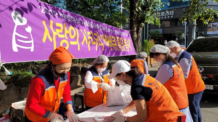 [대전=세계타임즈 이채봉 기자] 9천명 SNS 대전시 봉사단체 사랑의 사다리 밴드(리더 이정제)는 5일 오후3시, 코로나19 최전선에서 애쓰고 있는 대전시 서구보건소 100명의 직원들에게 바비큐 통닭 50마리 봉사로 우리 사회의 따뜻한 사랑을 전달하였다.